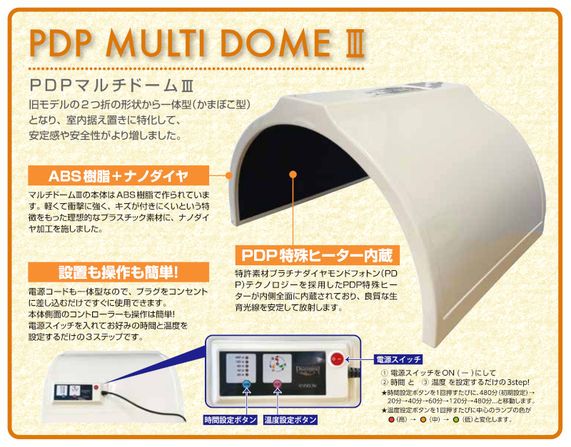 旧モデルの2つ折の形状から一体型 (かまぼこ型)となり、室内据え置きに特化して、安定感や安全性がより増しました。