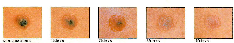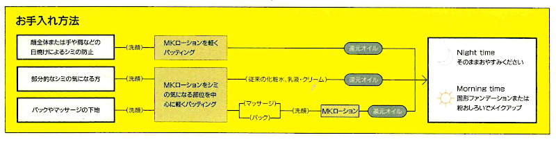 クレンジング、洗顔ソープ、洗顔フォームで汚れを落とします。暖かいタオルをシミ部分中心にあてて覆います。2.3分して・・・・シミ専用乳液を3、4滴手のひらにとり、気になるシミの部分に軽く刷り込むようにマッサージして導入を促してください。